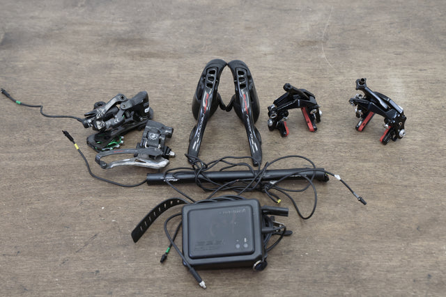 What’s included: Shifters (Super Record EPS 12), front derailleur(Super Record EPS 12 + chain catcher), rear derailleur(Super Record EPS 12), calipers (Record 12 Skeleton direct mount), EPS wires, EPS junction box, EPS battery
