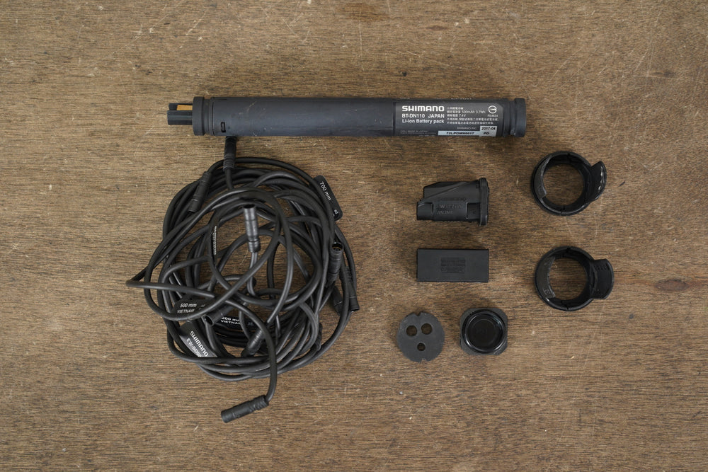 What’s included: Shifters (ST-R9150), front derailleur (FD-R9150), rear derailleur (RD-R9150-SS), Di2 wires, junction box A (bar end), junction box B, Di2 battery (BT-DN110)