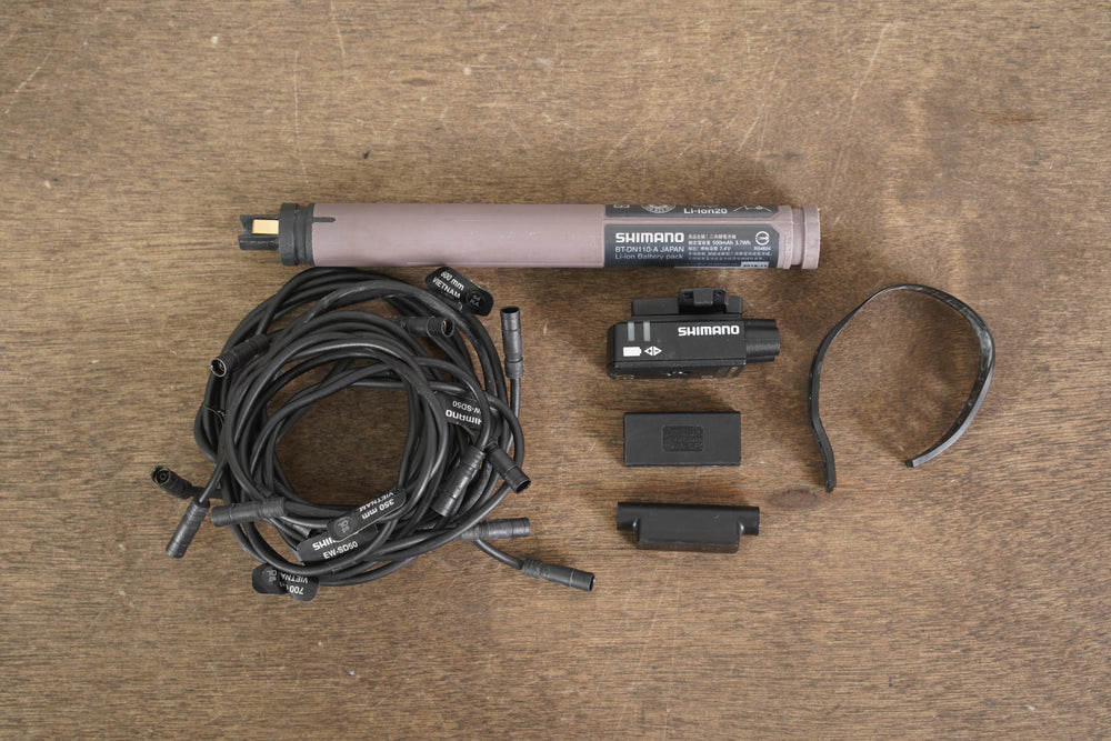 What’s included: Shifters (ST-R8070), front derailleur (FD-R8050), rear derailleur (RD-R8050-SS), brake calipers (BR-R8070), junction box A, junction box B, Di2 wires, Di2 battery (BT-DN110-A),wireless unit (EW-WU111)