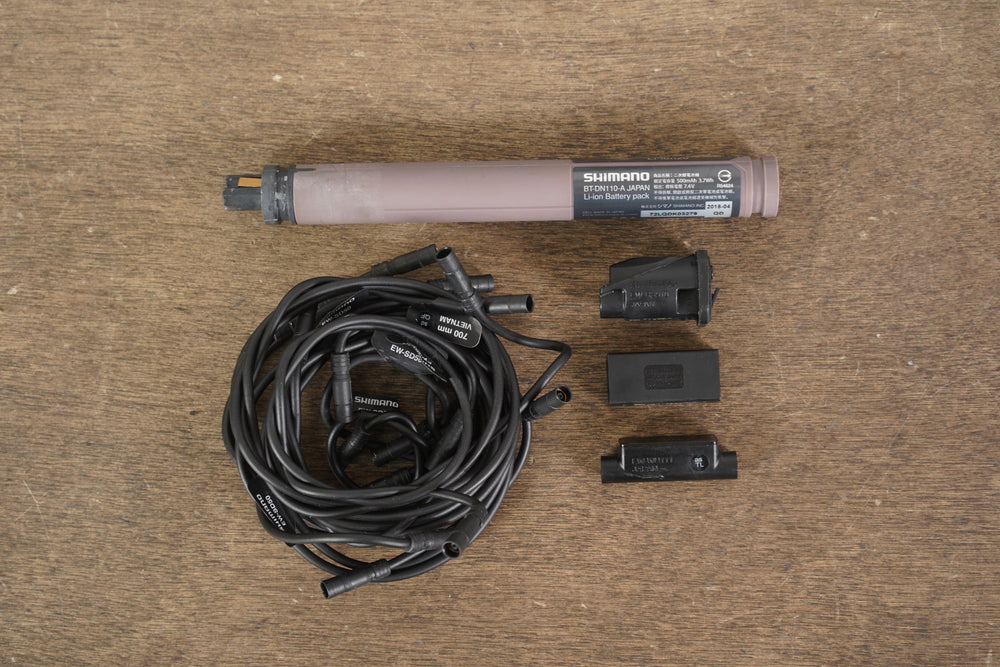 What’s included: Shifters (ST-R8070), front derailleur (FD-R8050), rear derailleur (RD-R8050-GS), brake calipers (BR-R8070), junction box A (bar end), junction box B, wireless unit(EW-WU111), Di2 wires, Di2 battery (BT-DN110-A)