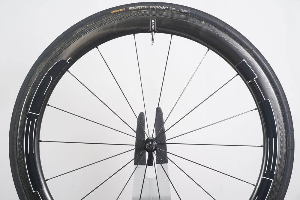 Extras included: 25mm Continental Gatorskin tubular rear tire, 24mm Continental Force Comp tubular front tire, quick release skewers