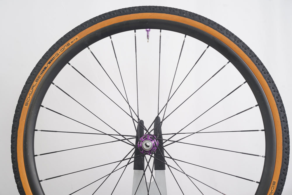 Extras included: 1.5" Schwalbe G-One Bite tires, tubeless valves, rear quick release skewer