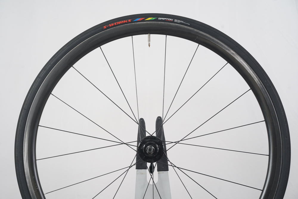 Extras included: 26mm Specialized S-WORKS Turbo rear tire, 25mm Continental Grand Prix 5000 TL front tire, tubes, quick release skewers