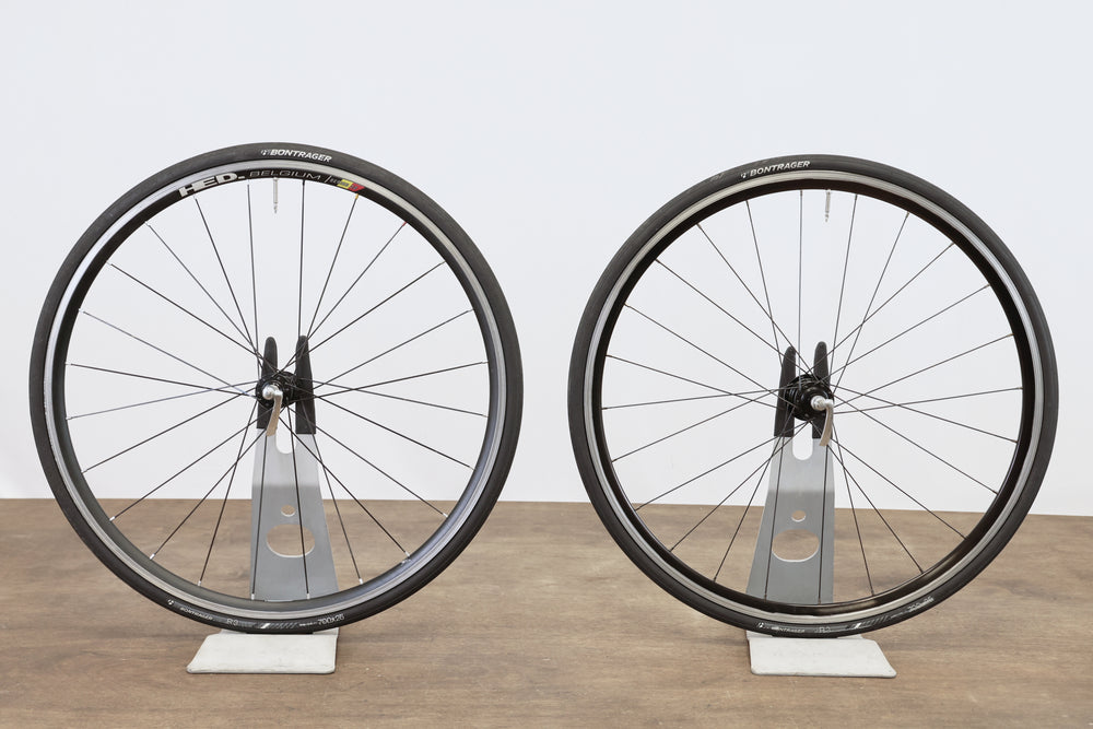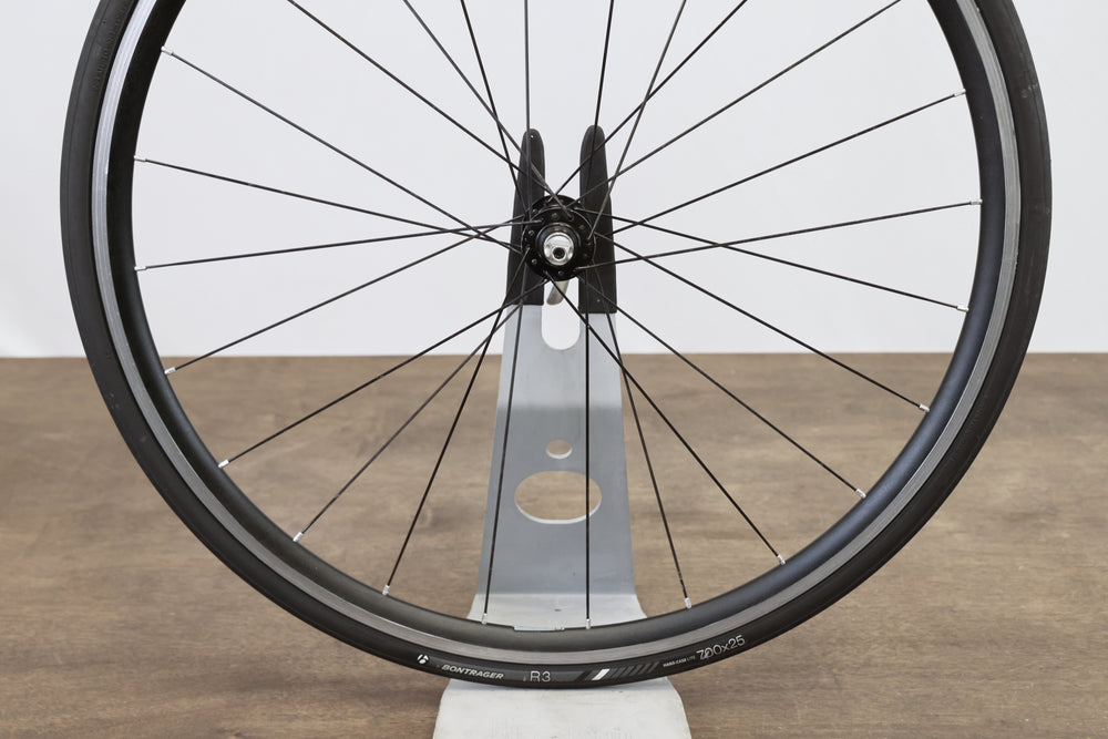 Extras included (included at no extra cost, conditions may vary and no guarantees are made, listing price reflects wheels only): 25mm Bontrager R3 tires (<25%), tubes, quick release skewers