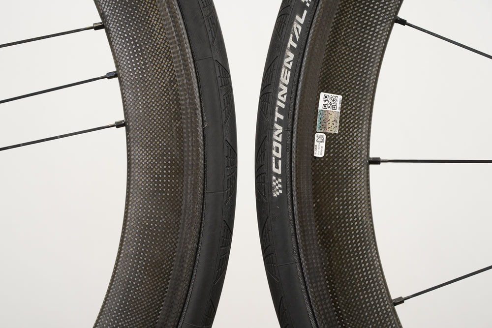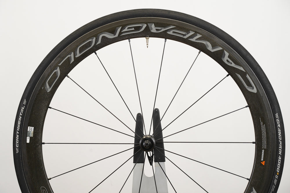 Extras included (included at no extra cost, conditions may vary and no guarantees are made, listing price reflects wheels only): 25mm Continental Grand Prix 4000 S II tires (75%), tubes, Campagnolo quick release skewers