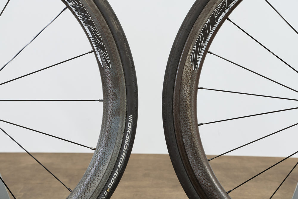 Extras included (included at no extra cost, conditions may vary and no guarantees are made, listing price reflects wheels only): 23mm Continental Grand Prix 4000 S II tires (75%), tubes, quick release skewers